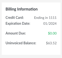 3. On the right side you will see your Billing Information panel.