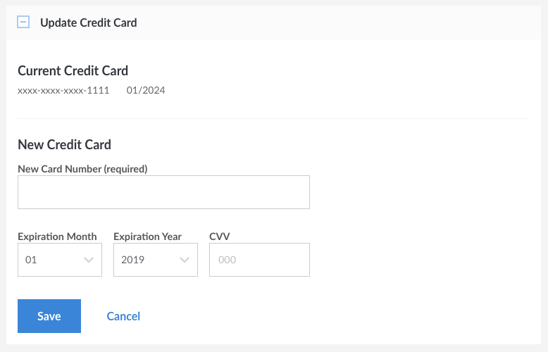 5. Click Save. Your credit card information will be updated.