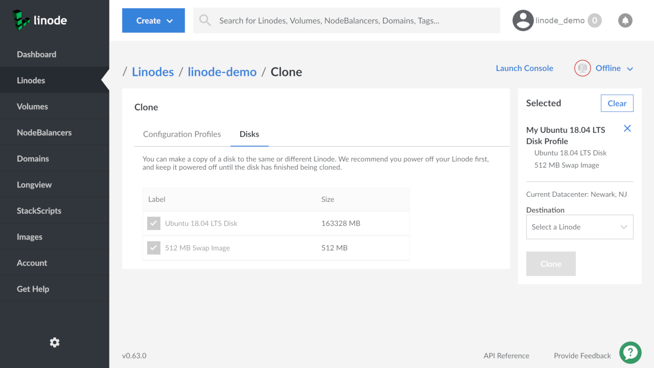 To clone an entire Linode, see our Clone Your Linode guide. Cloning a Linode is a simple alternative to migrating your Linode to a different data center.