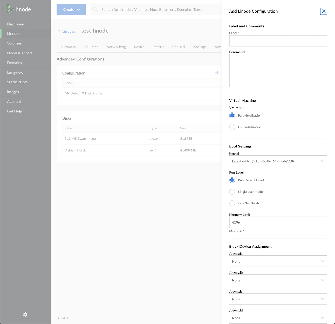 The Linode Cloud Manager allows you to create, edit, and use disks and configuration profiles with your Linodes. You can install different Linux distributions on the disks, set device assignments, and configure boot settings. This guide will show you how to put the pieces together to create a custom setup.
