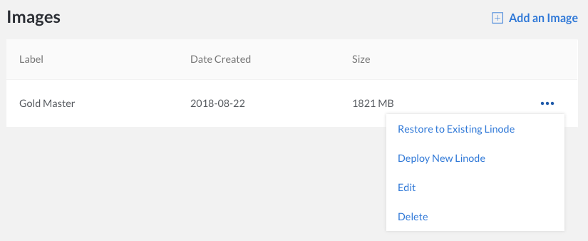 Deploying one of your saved images to any Linode under your account is a simple process.